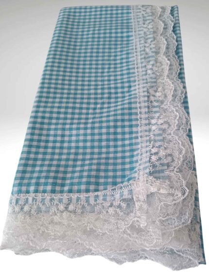 170×170 Güpürlü Pamuklu Sofra Bezi/Masa Örtüsü Pötikare -TURKUAZ
