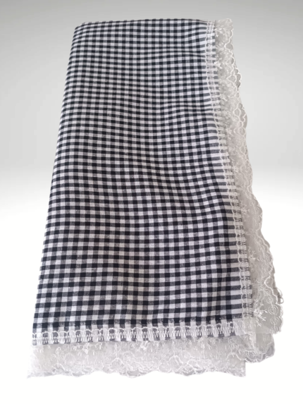 170×170 Güpürlü Pamuklu Sofra Bezi/Masa Örtüsü Pötikare -SİYAH