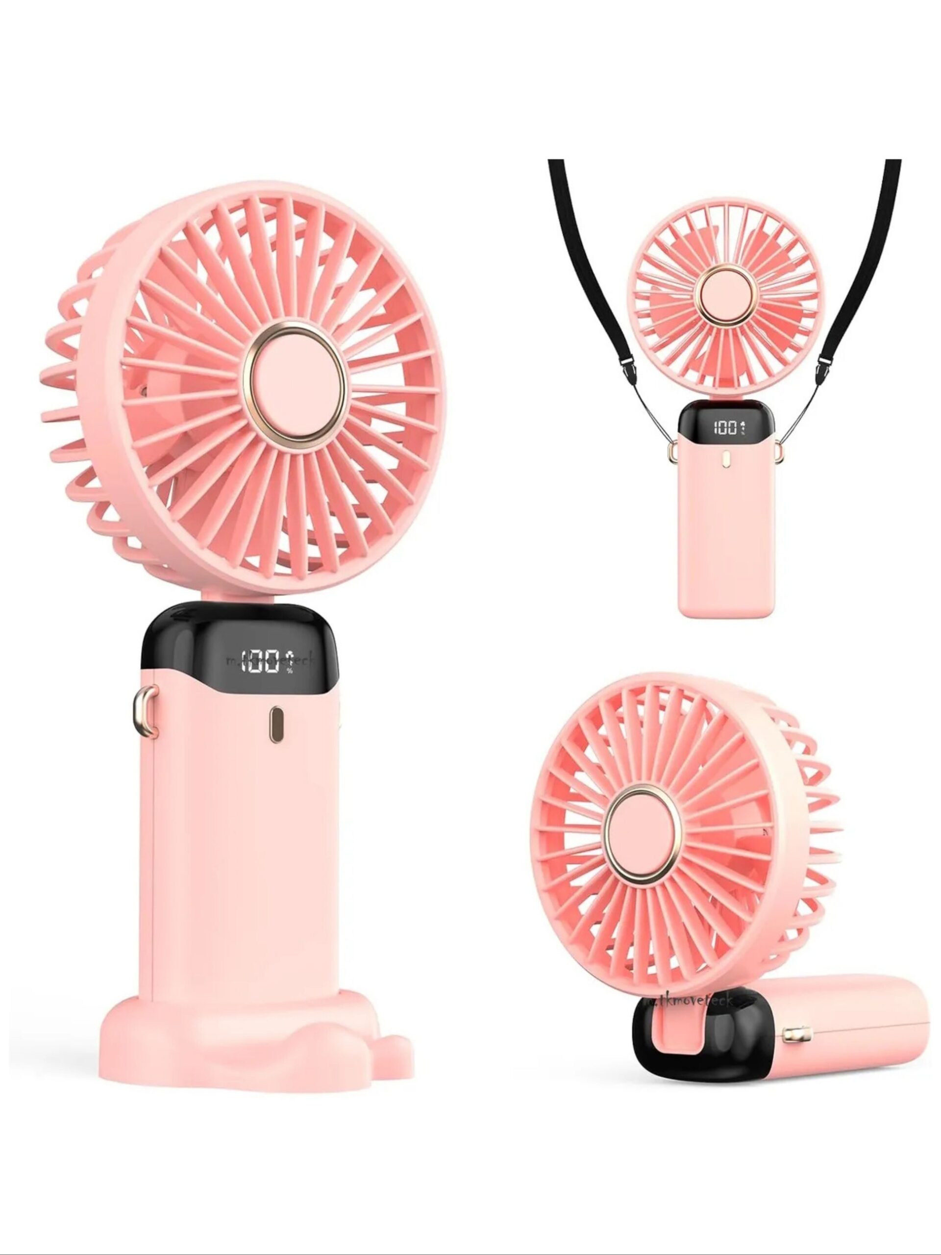 Lcd Ekranlı Şarjlı Mini El Boyun Masa Fanı, Vantilatörü-PEMBE