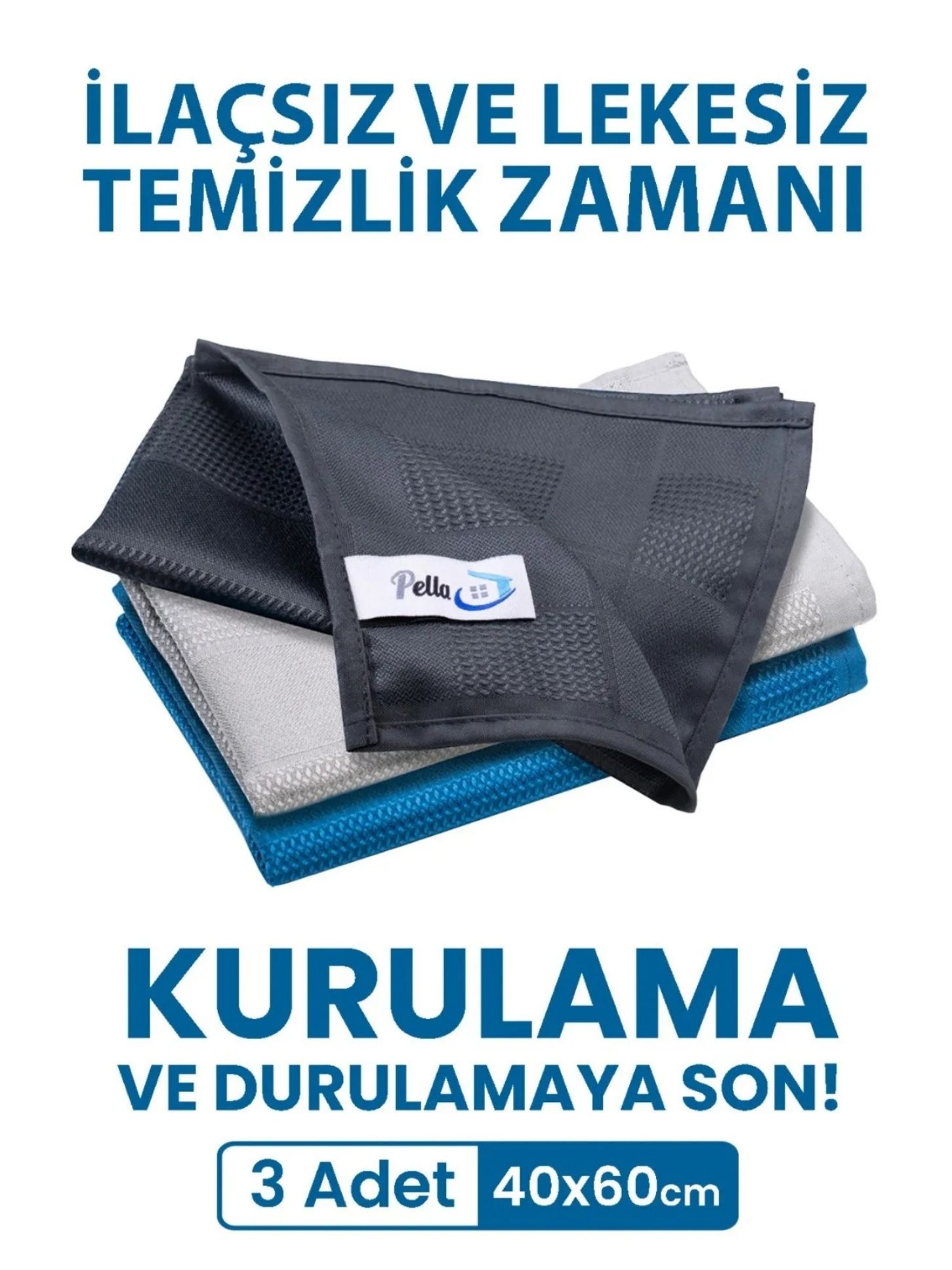 Pella İthal 3’lü Mikrofiber Temizlik Bezi (Cam, Araba, Mutfak) 20 Paket