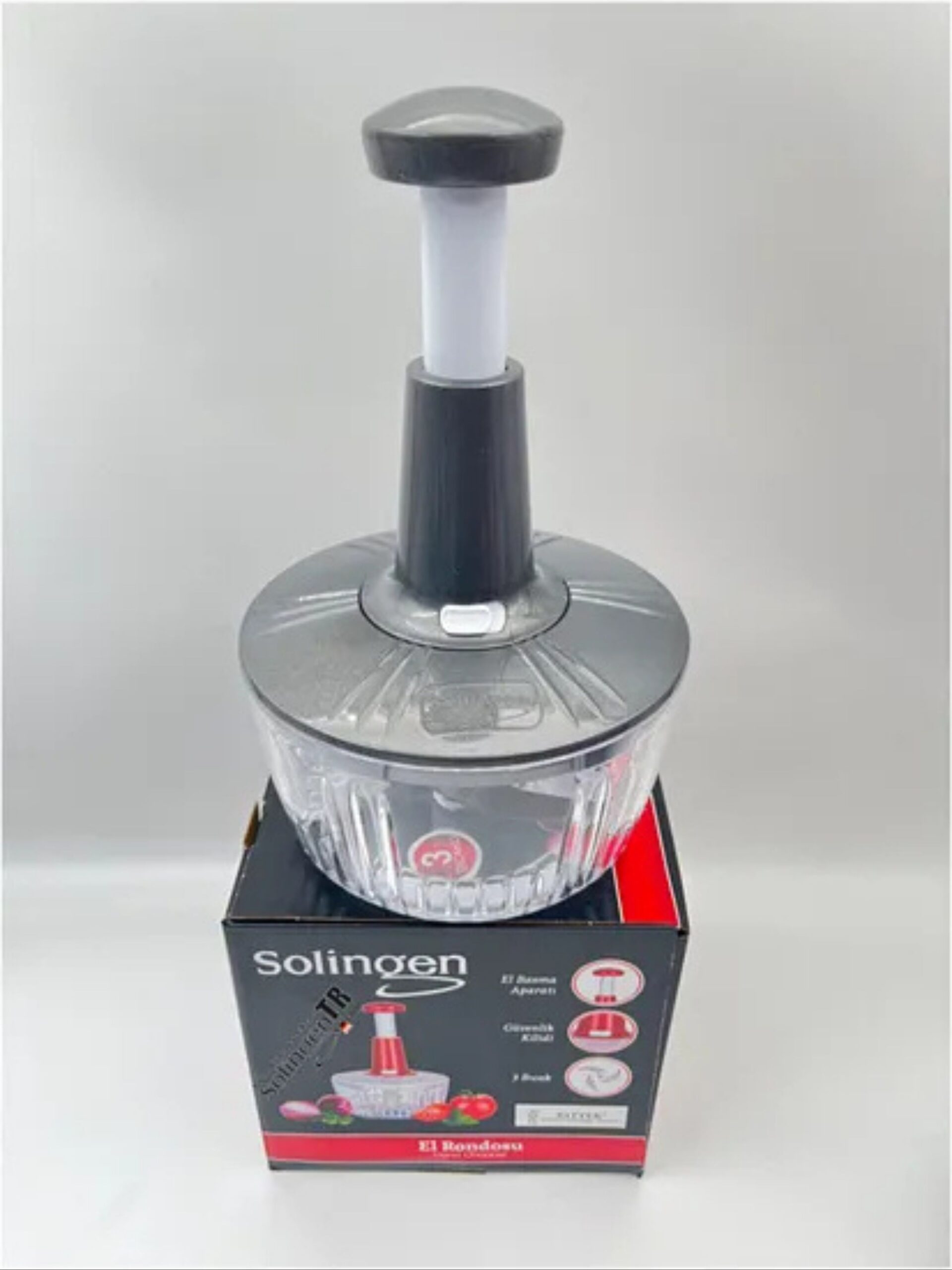 Solingen El Rondosu 3 Bıçaklı Paslanmaz Çelik Bıçaklı Basmalı-GRİ
