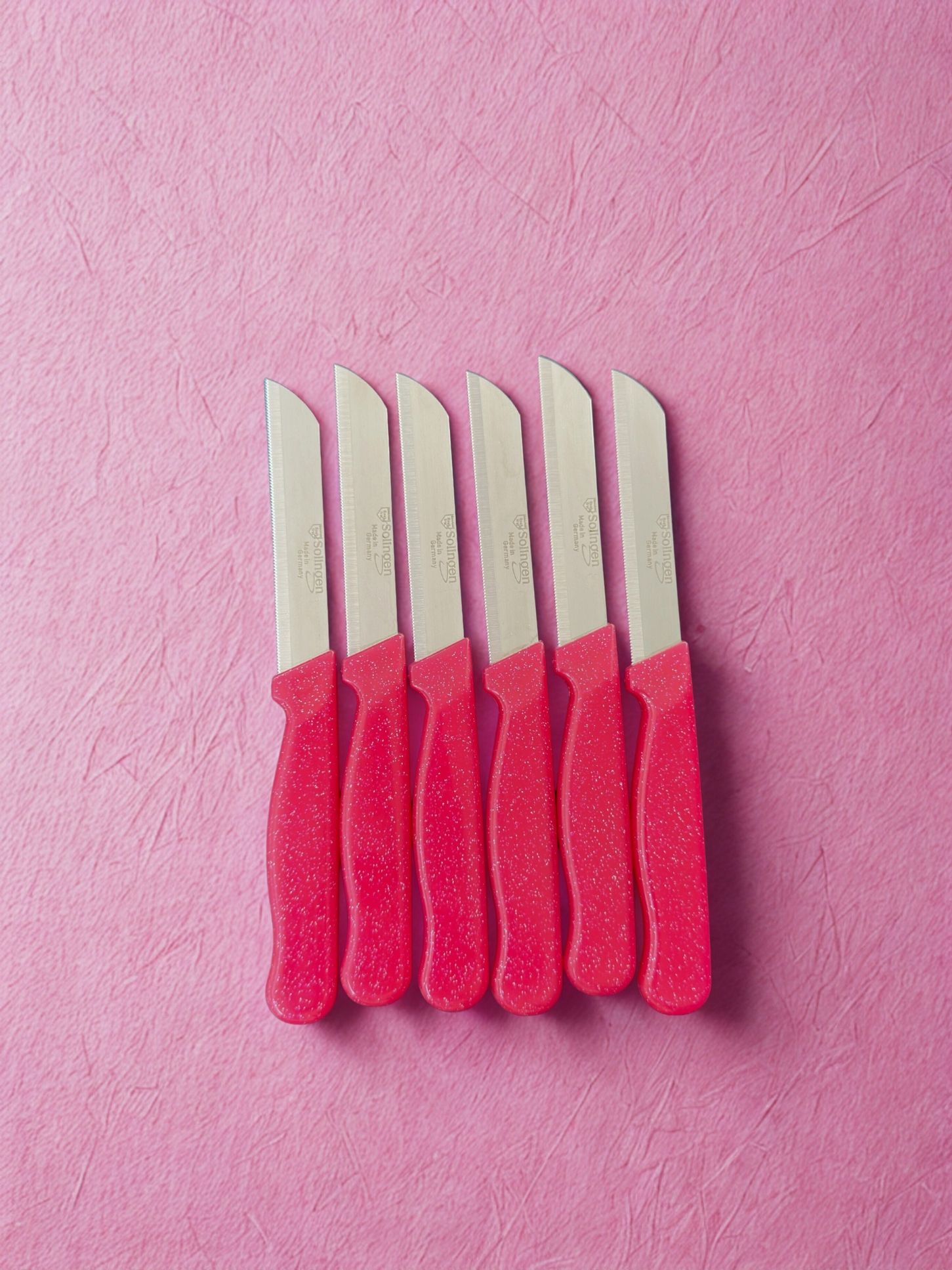 Solingen Tırtıklı Meyve Bıçağı 6lı -Fuşya Simli
