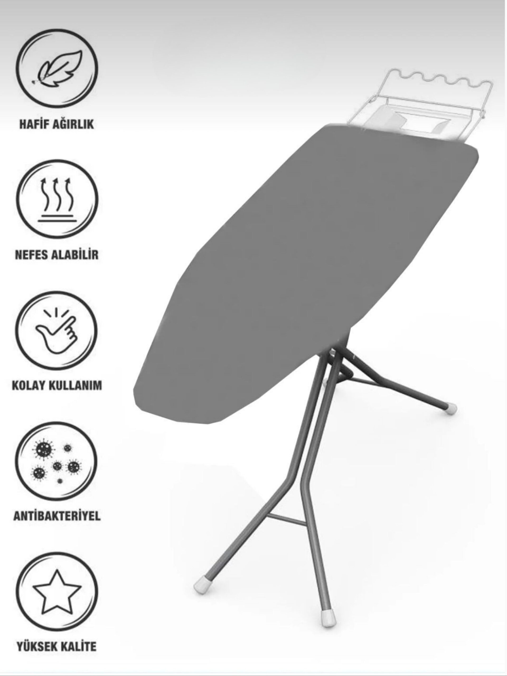 • – 50×140 cm boyutlarındaki geniş yüzey alanı ile büyük ütü masalarınıza mükemmel uyum sağlar.